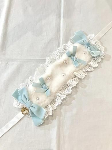 オフ白ファーxオフ白レースxオフ白グログランリボンxホワイトパール