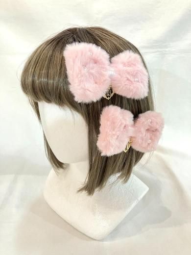 ファーリボンにクリスタルやパール、ミニプリンセスドロップでデコレーションしています。