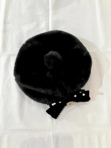 黒ファーxオフ白レースx黒グログランリボンxクリームパール
