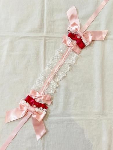 ・ピンク×オフ白レース×ピンクリボン×ローズピンクリボン