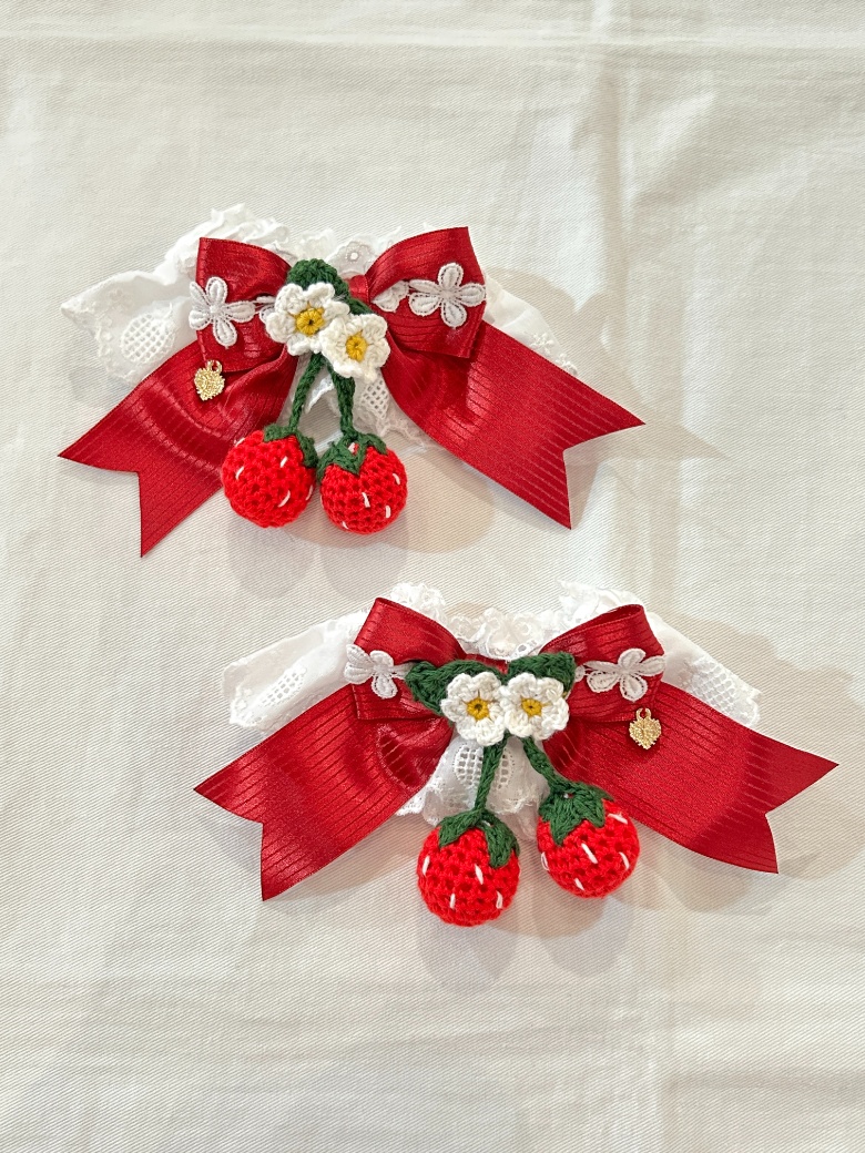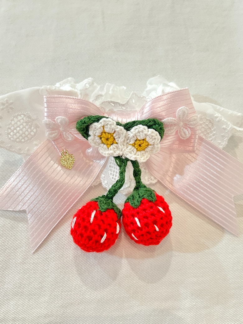 いちご柄綿レースのお袖とめです。