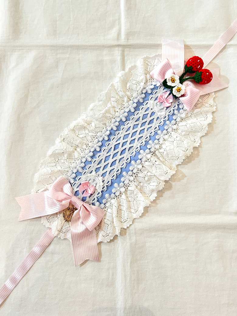 サックスxオフ白レースxピンクリボン