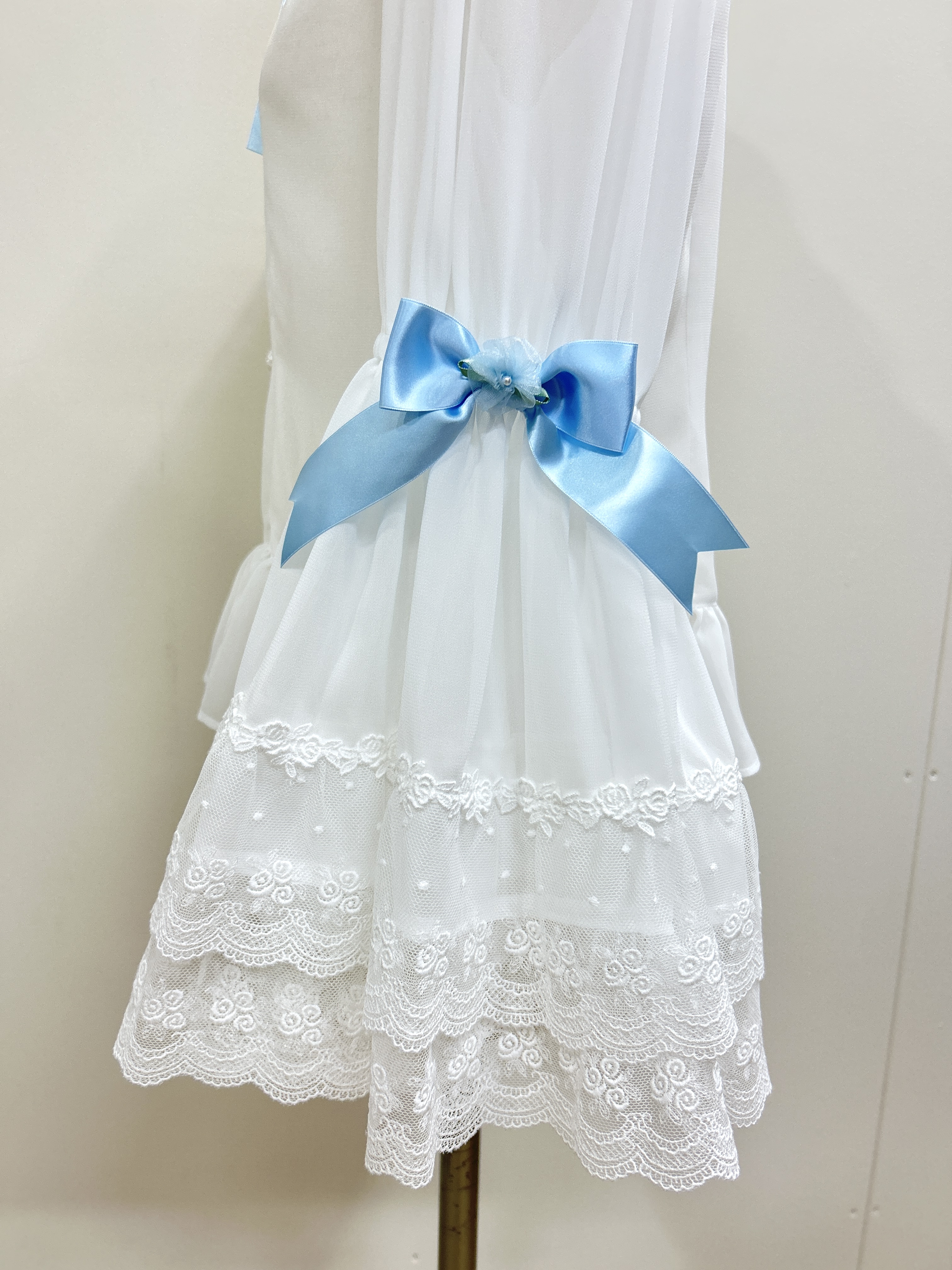 オフ白xオフ白レースxサックスリボンxサックスミニバラ