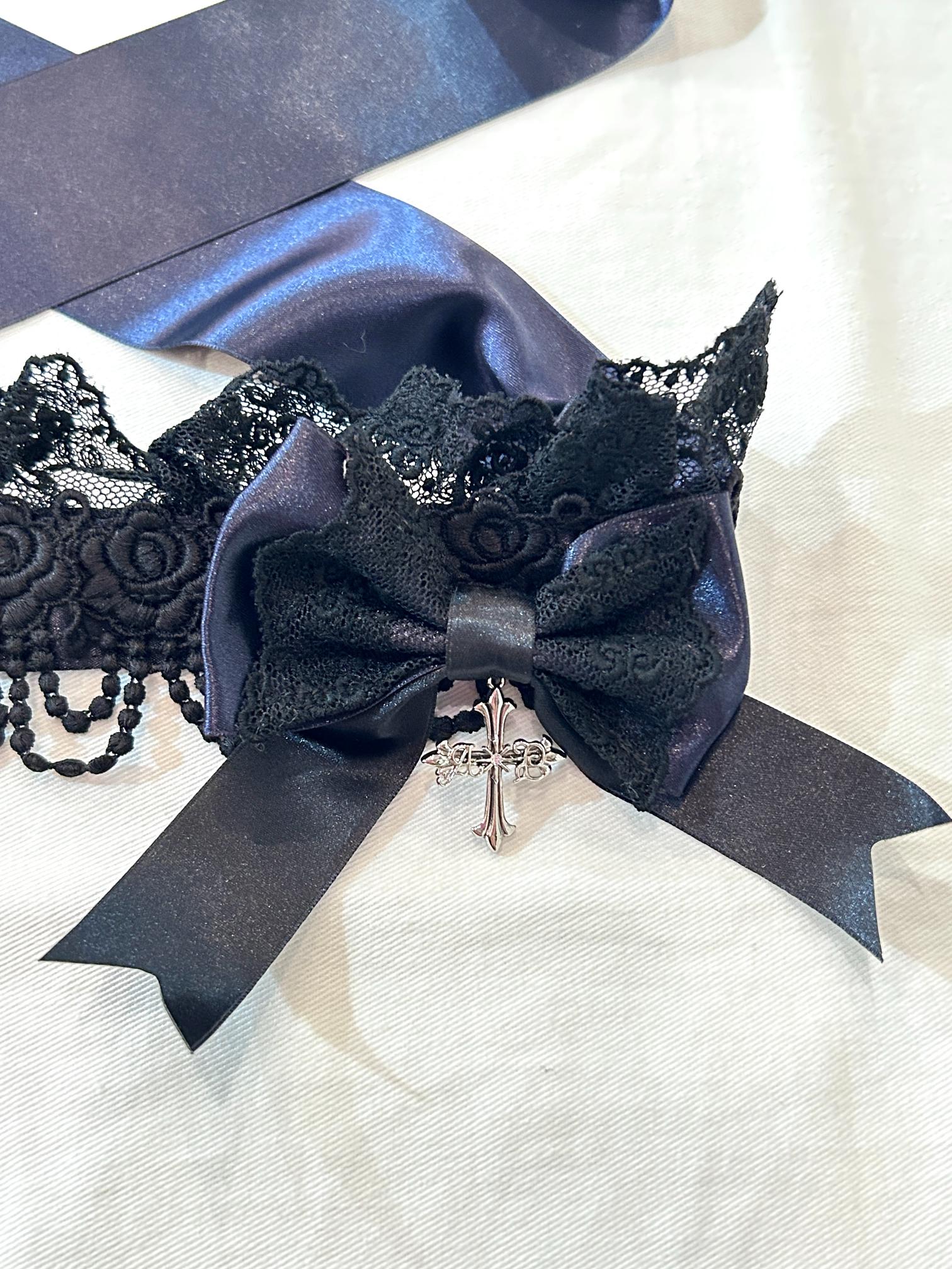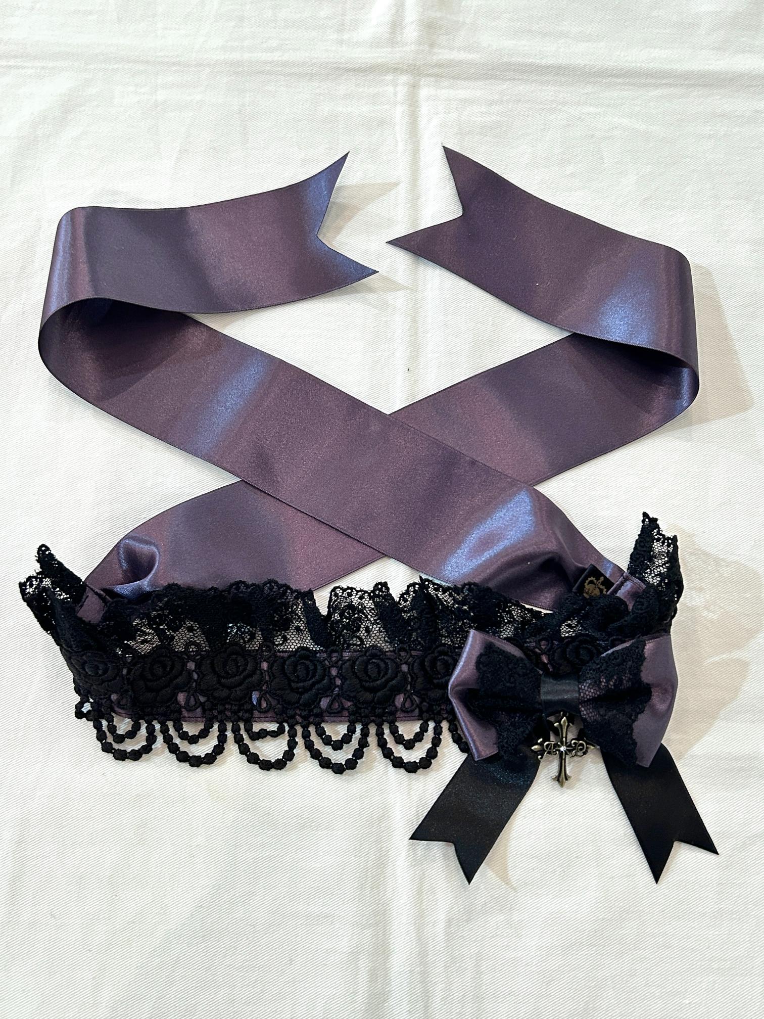 黒xパープルリボンxアンティークゴールドAPクロスチャーム