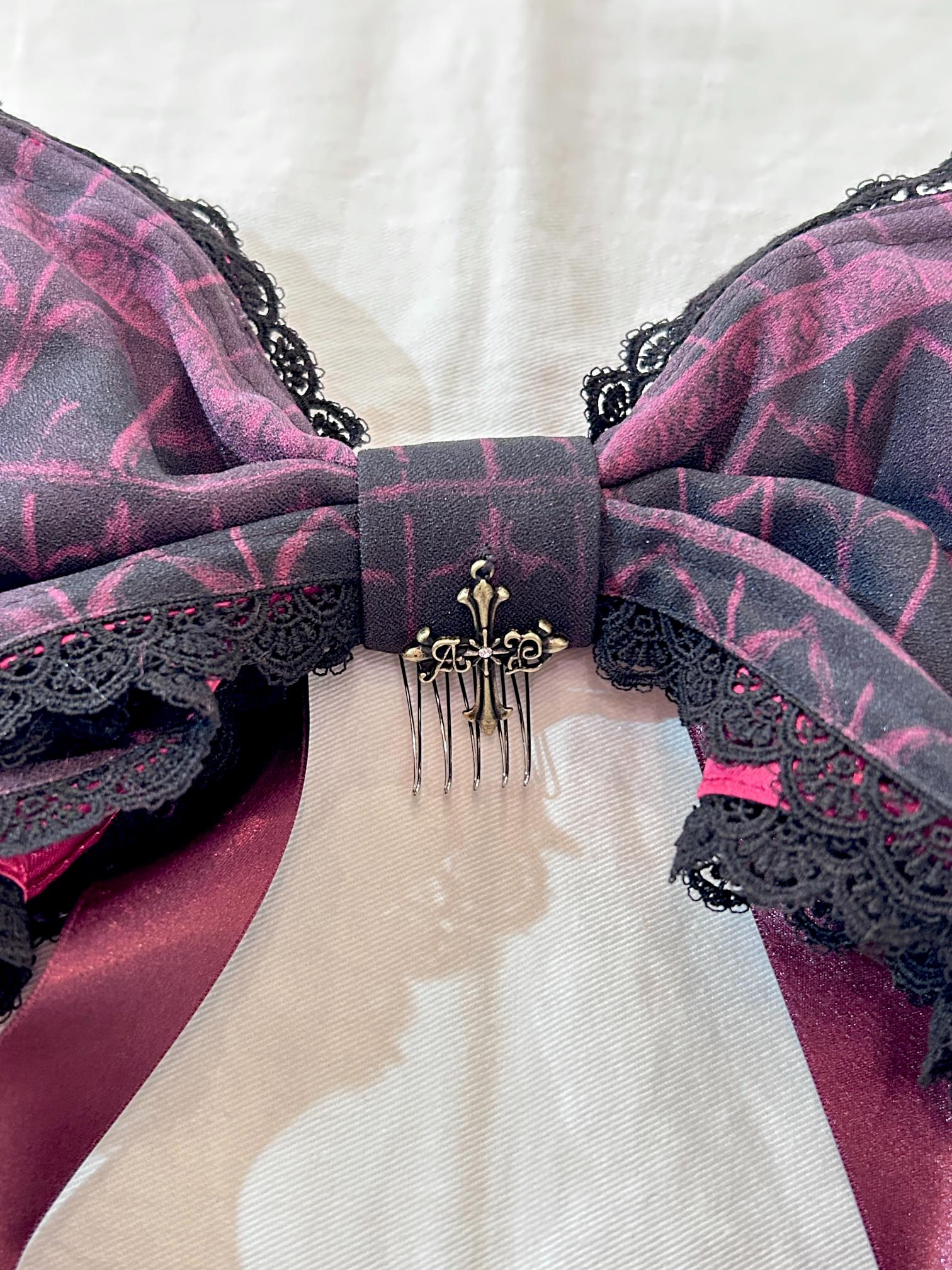黒パープルx黒レースxパープルリボンxアンティークゴールドA/Pクロスチャーム