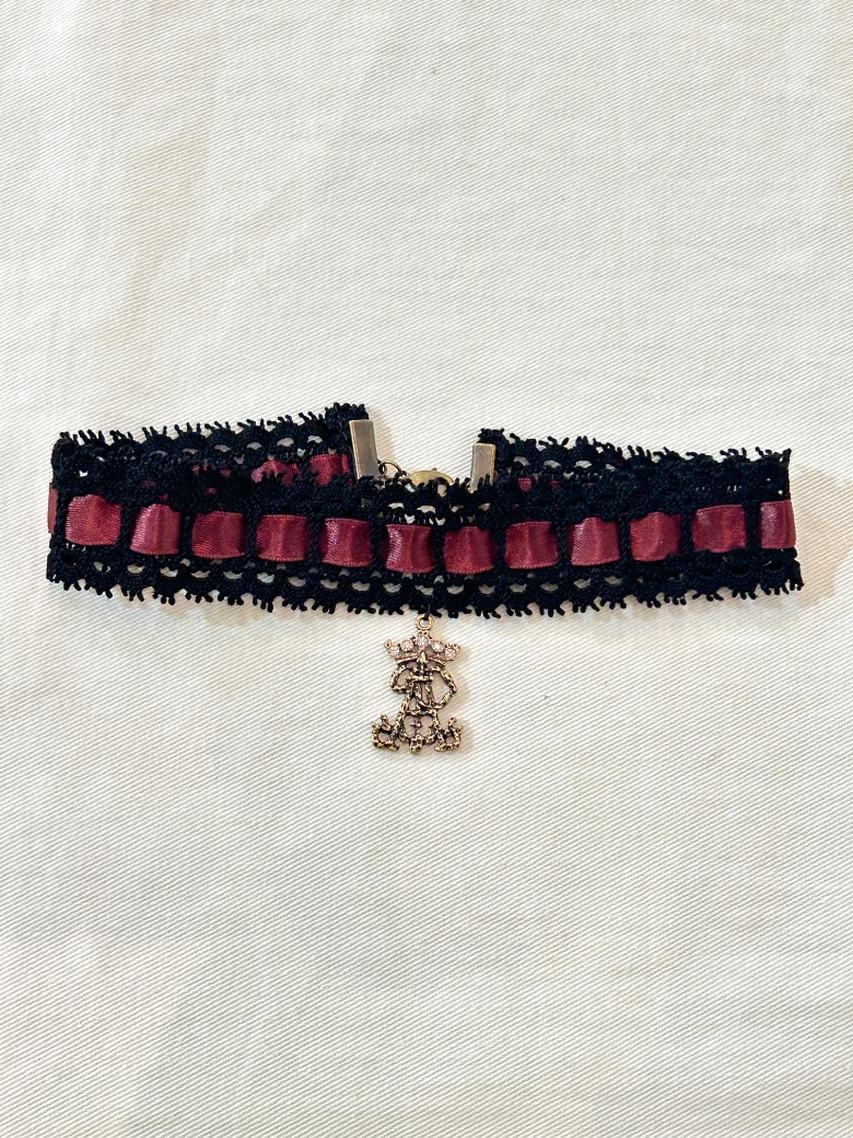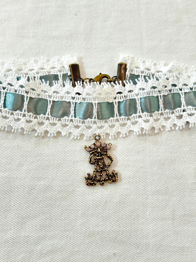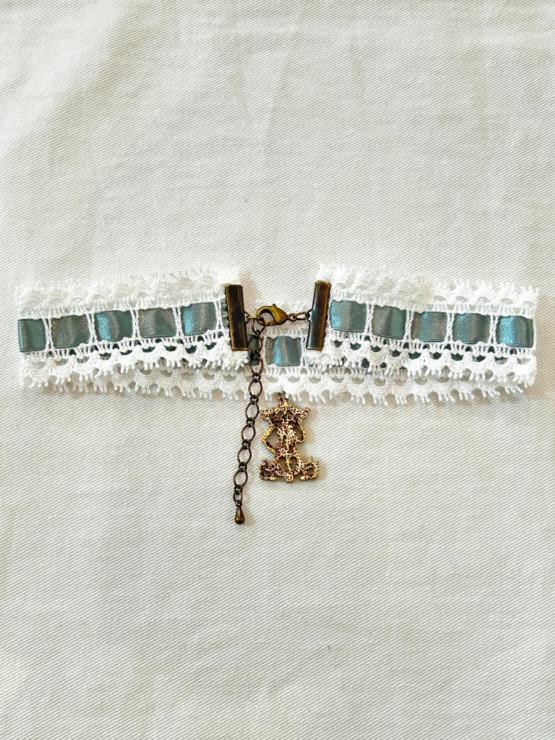 トーションレースにサテンリボンを通したシンプルなAPチャーム付きチョーカーです