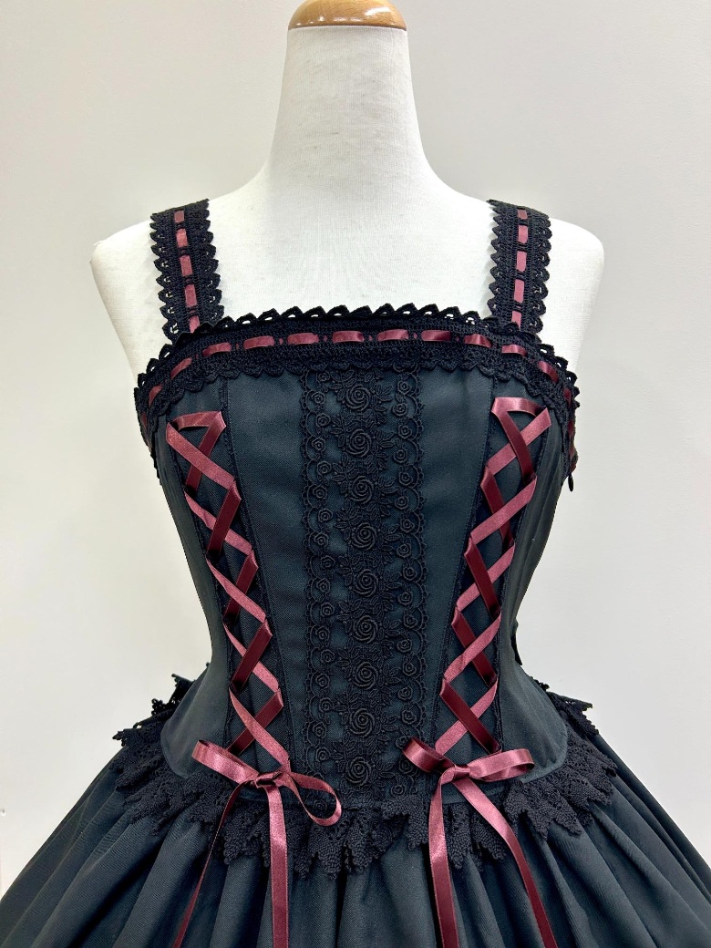 黒x黒レース・シフォンxボルドーリボンxアンティークゴールドハトメ