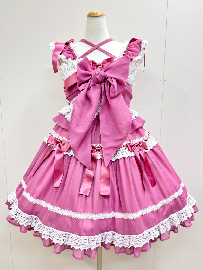 前で結んでいる大きなリボンは後ろ側で結ぶこともできます。
